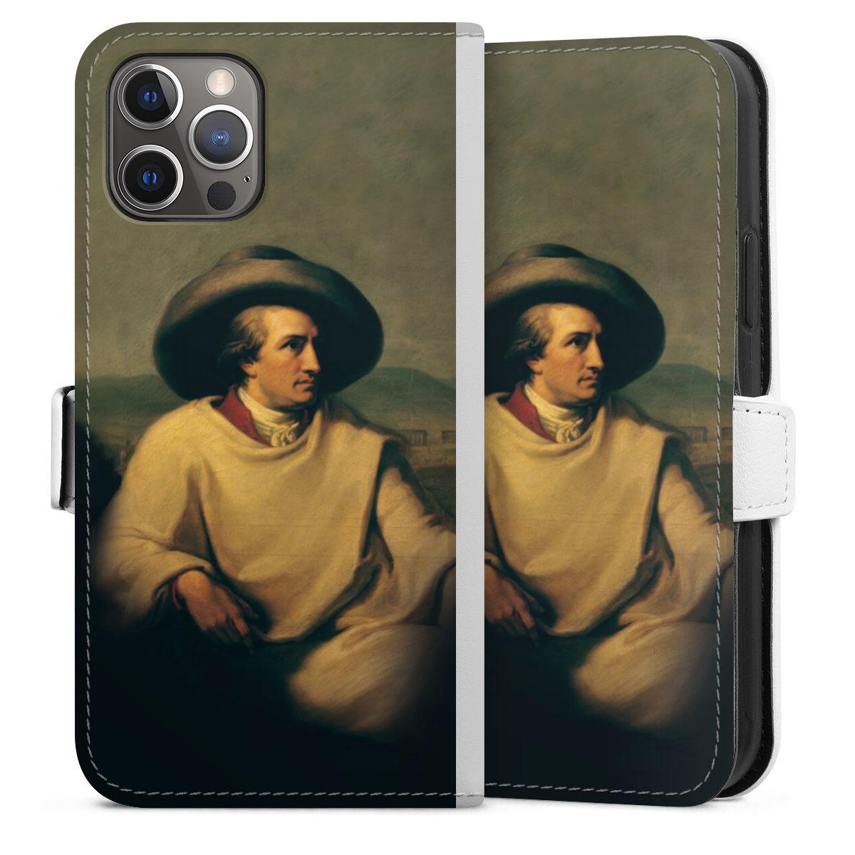 For our Sideflip Case we are using our advanced direct printing technology. The back and frontside are fully printabale, the inside of the phone bag is left unprinted. You can order the phone case without print, printed completely or also with a partial print.