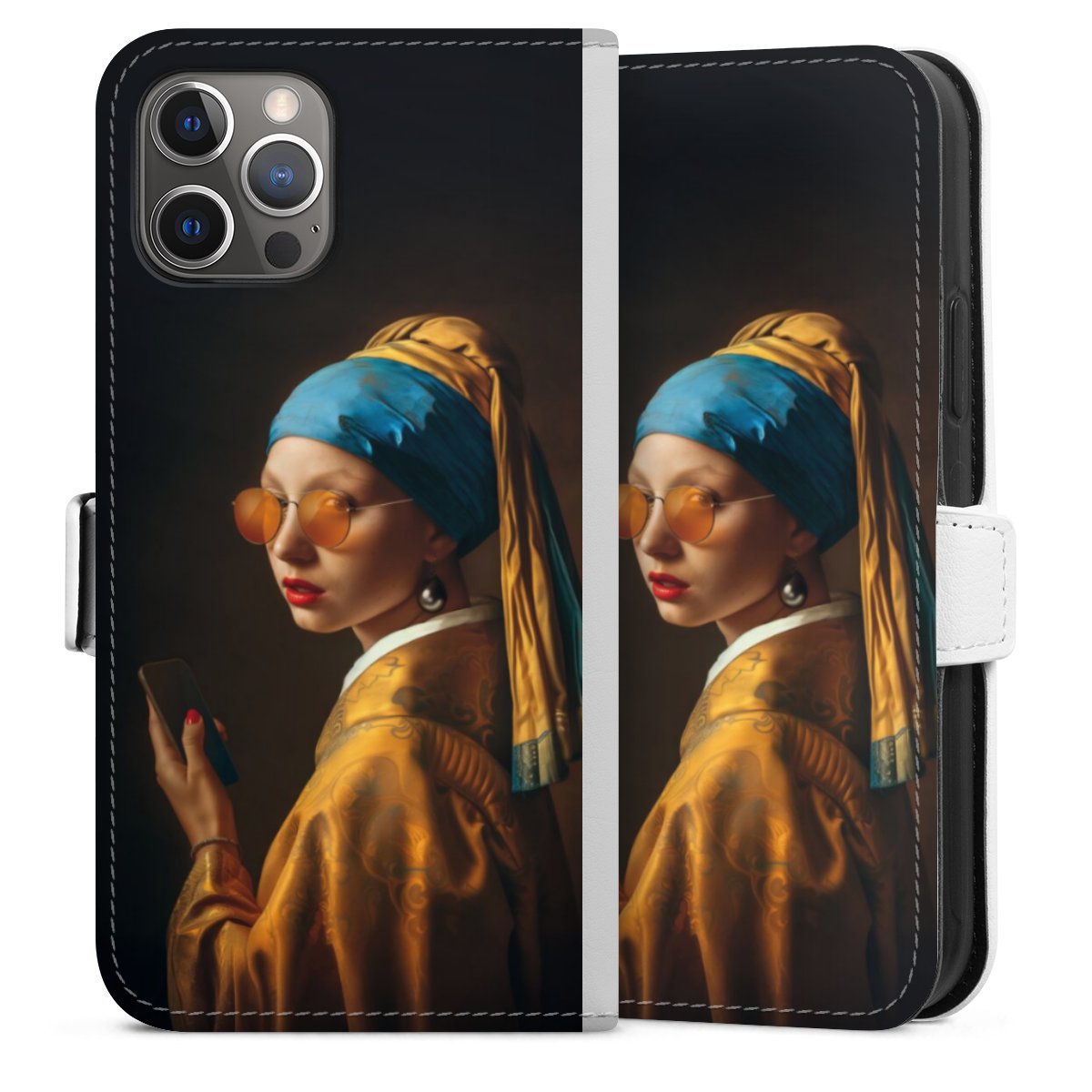 For our Sideflip Case we are using our advanced direct printing technology. The back and frontside are fully printabale, the inside of the phone bag is left unprinted. You can order the phone case without print, printed completely or also with a partial print.