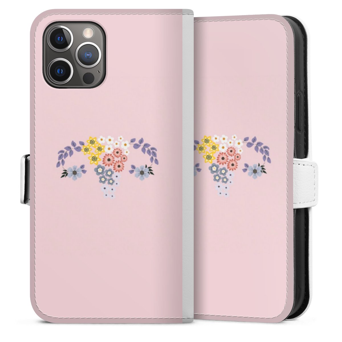 For our Sideflip Case we are using our advanced direct printing technology. The back and frontside are fully printabale, the inside of the phone bag is left unprinted. You can order the phone case without print, printed completely or also with a partial print.