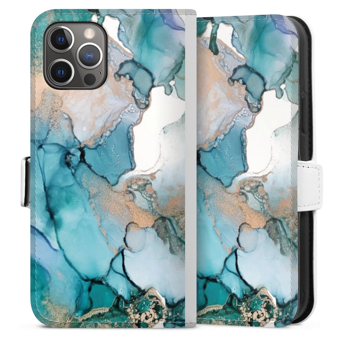 For our Sideflip Case we are using our advanced direct printing technology. The back and frontside are fully printabale, the inside of the phone bag is left unprinted. You can order the phone case without print, printed completely or also with a partial print.