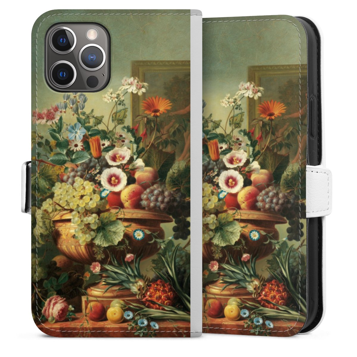For our Sideflip Case we are using our advanced direct printing technology. The back and frontside are fully printabale, the inside of the phone bag is left unprinted. You can order the phone case without print, printed completely or also with a partial print.