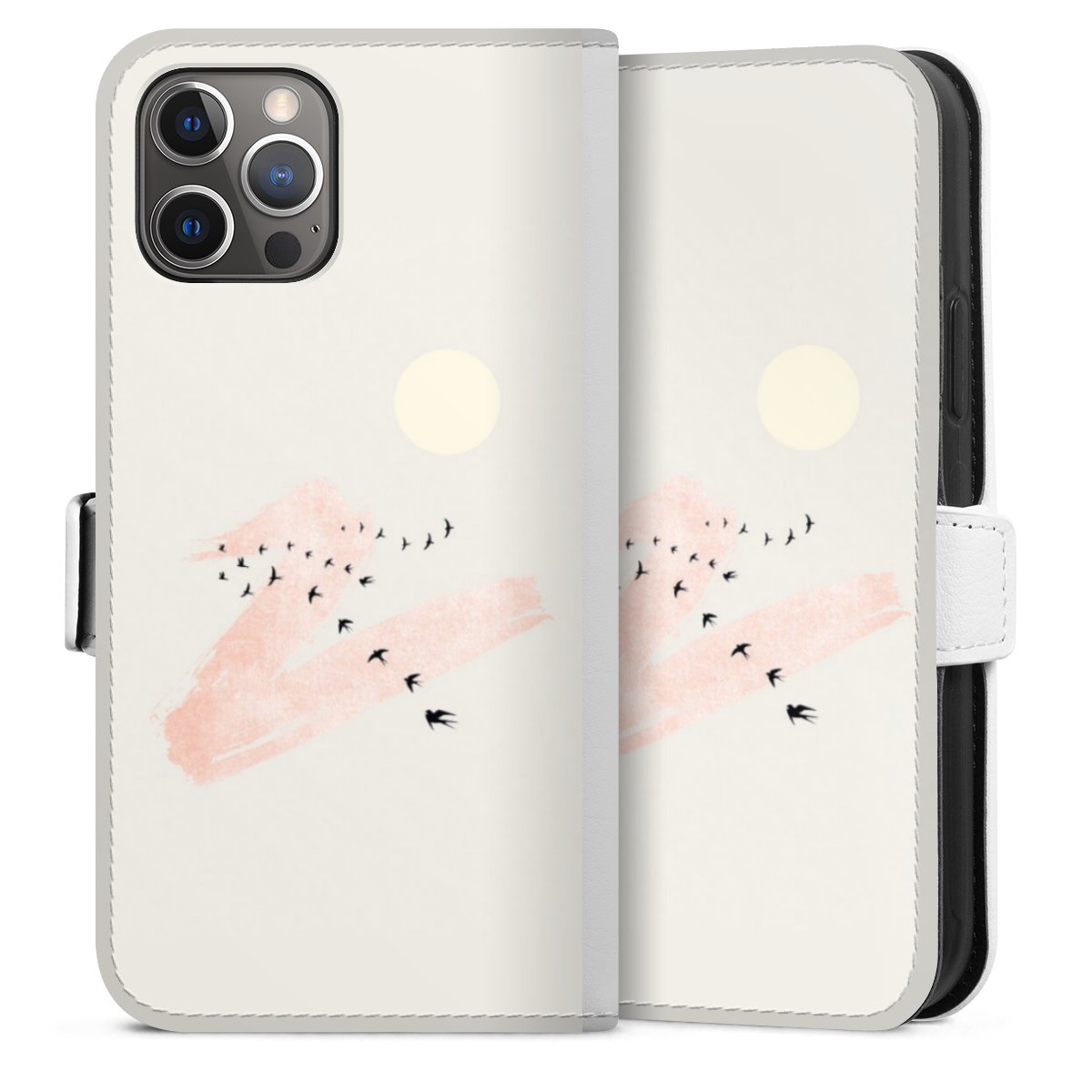 For our Sideflip Case we are using our advanced direct printing technology. The back and frontside are fully printabale, the inside of the phone bag is left unprinted. You can order the phone case without print, printed completely or also with a partial print.