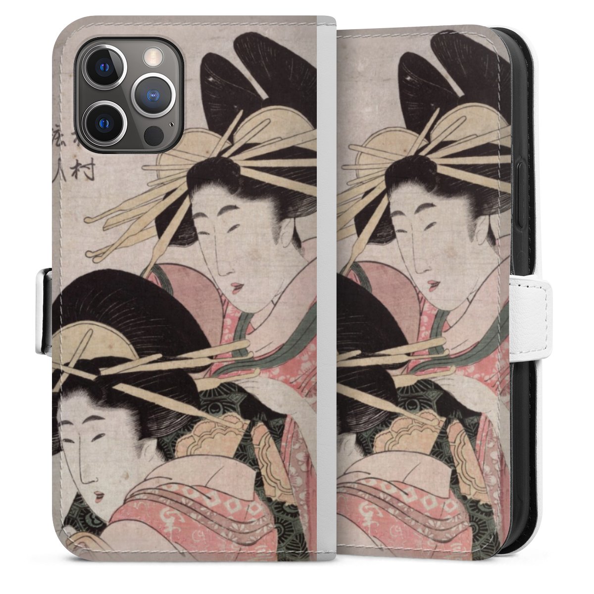 For our Sideflip Case we are using our advanced direct printing technology. The back and frontside are fully printabale, the inside of the phone bag is left unprinted. You can order the phone case without print, printed completely or also with a partial print.