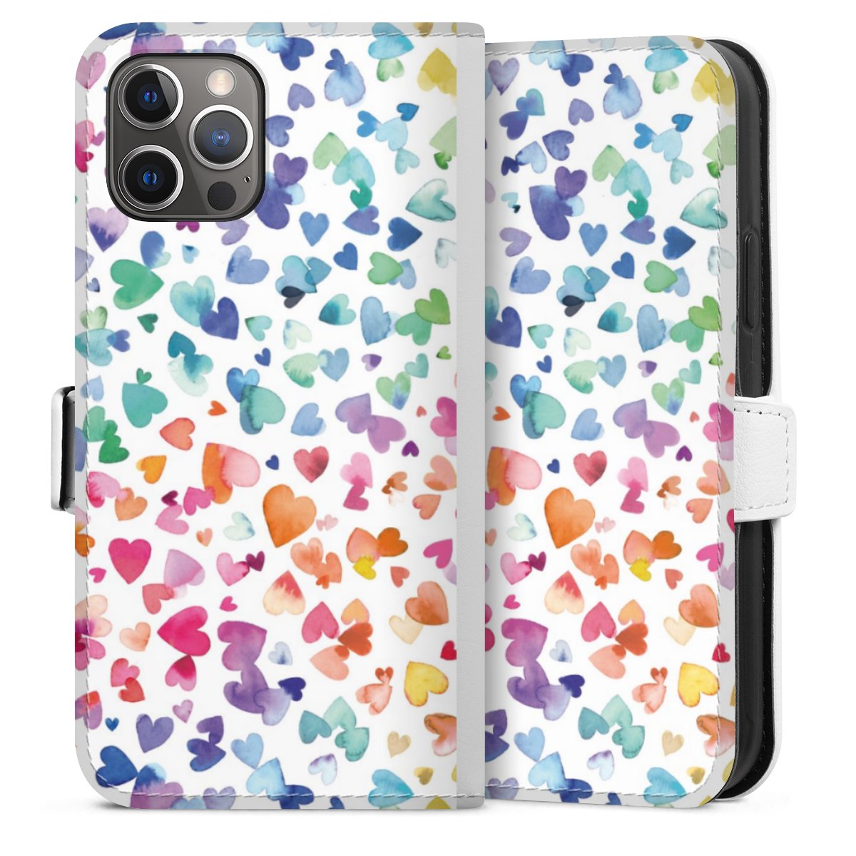 For our Sideflip Case we are using our advanced direct printing technology. The back and frontside are fully printabale, the inside of the phone bag is left unprinted. You can order the phone case without print, printed completely or also with a partial print.