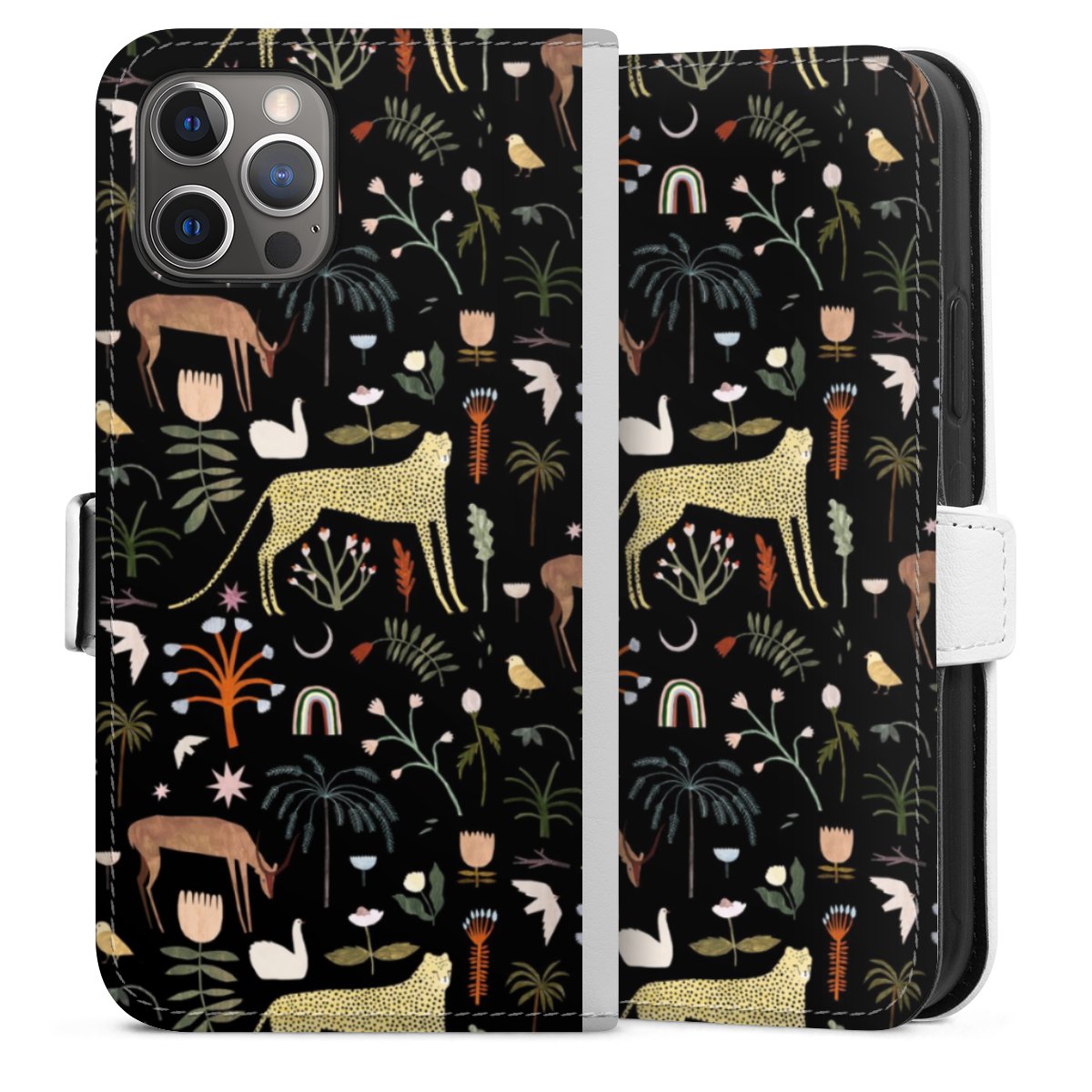 For our Sideflip Case we are using our advanced direct printing technology. The back and frontside are fully printabale, the inside of the phone bag is left unprinted. You can order the phone case without print, printed completely or also with a partial print.