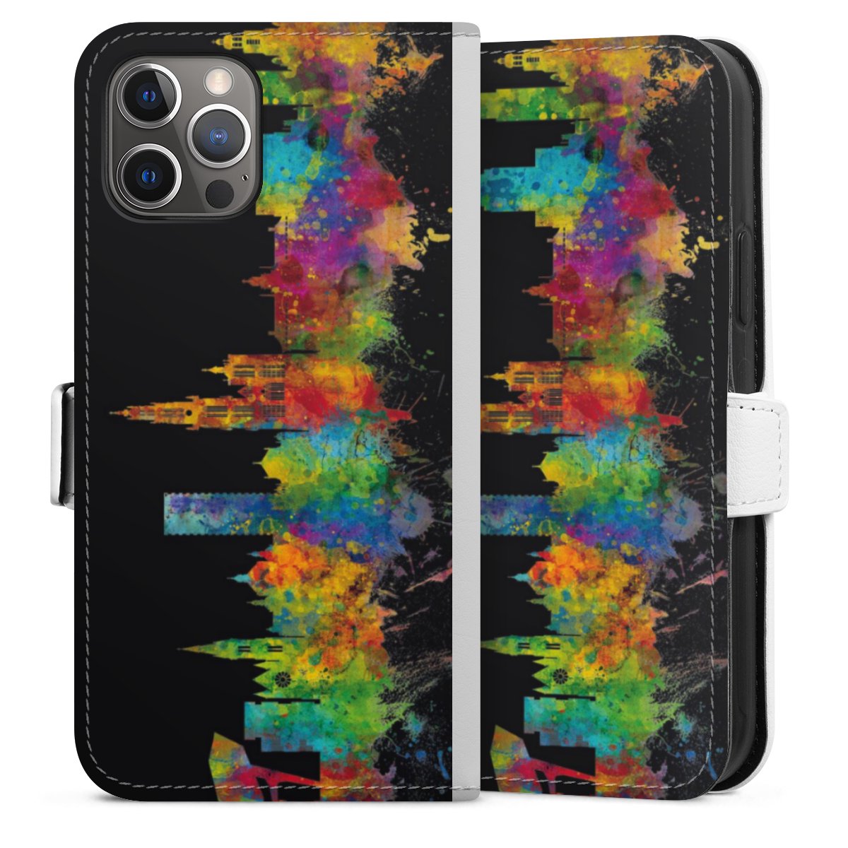For our Sideflip Case we are using our advanced direct printing technology. The back and frontside are fully printabale, the inside of the phone bag is left unprinted. You can order the phone case without print, printed completely or also with a partial print.