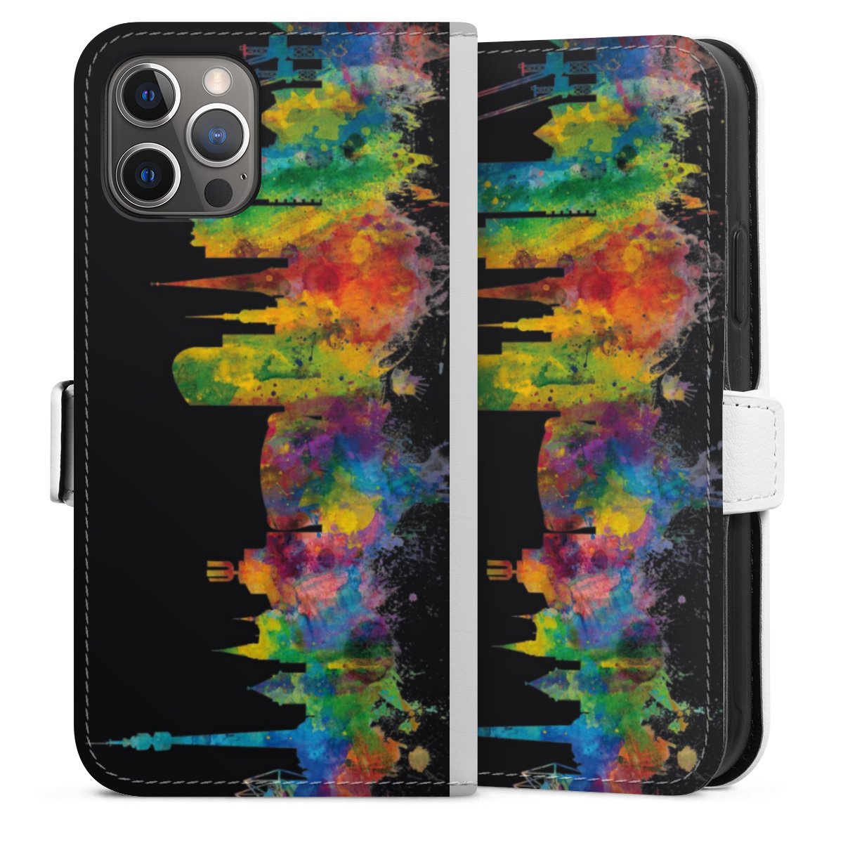 For our Sideflip Case we are using our advanced direct printing technology. The back and frontside are fully printabale, the inside of the phone bag is left unprinted. You can order the phone case without print, printed completely or also with a partial print.