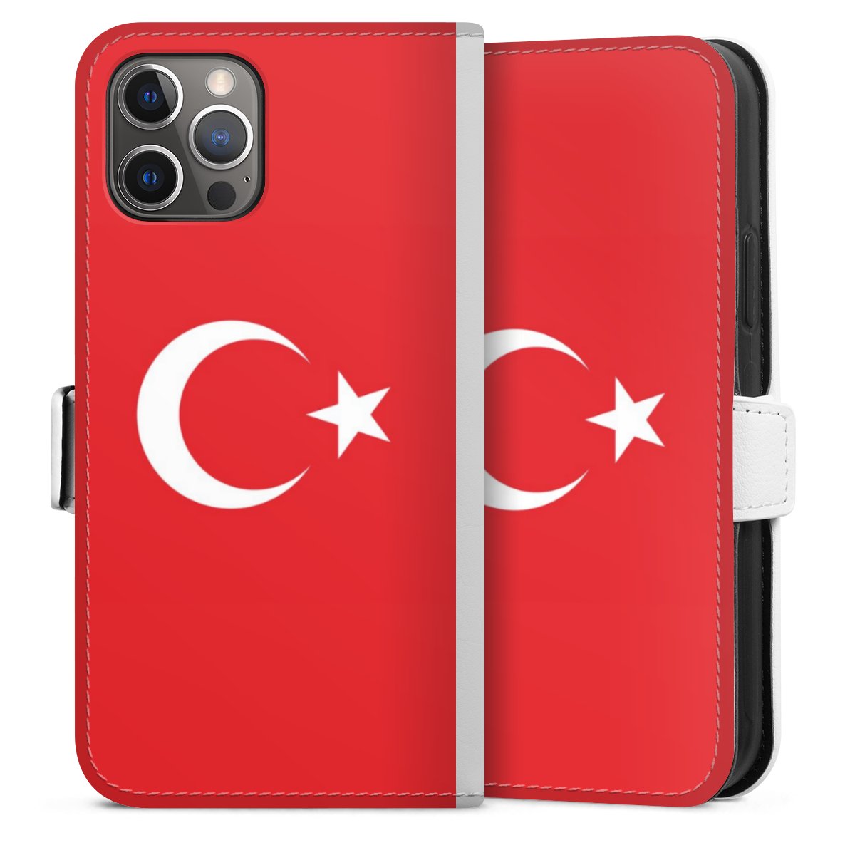 For our Sideflip Case we are using our advanced direct printing technology. The back and frontside are fully printabale, the inside of the phone bag is left unprinted. You can order the phone case without print, printed completely or also with a partial print.