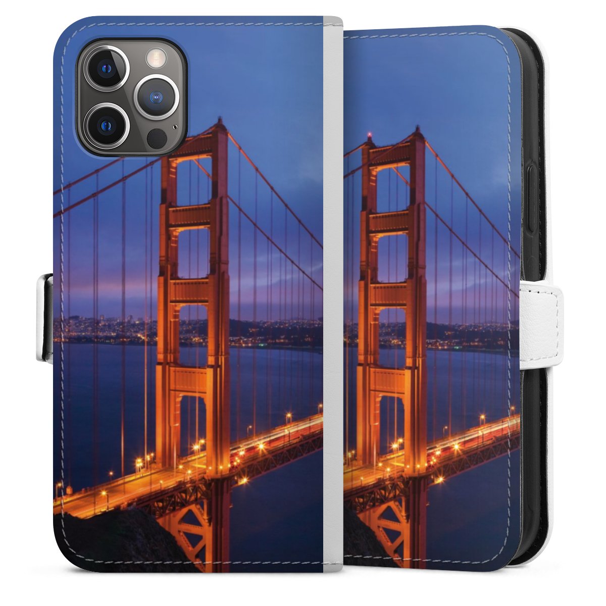 For our Sideflip Case we are using our advanced direct printing technology. The back and frontside are fully printabale, the inside of the phone bag is left unprinted. You can order the phone case without print, printed completely or also with a partial print.