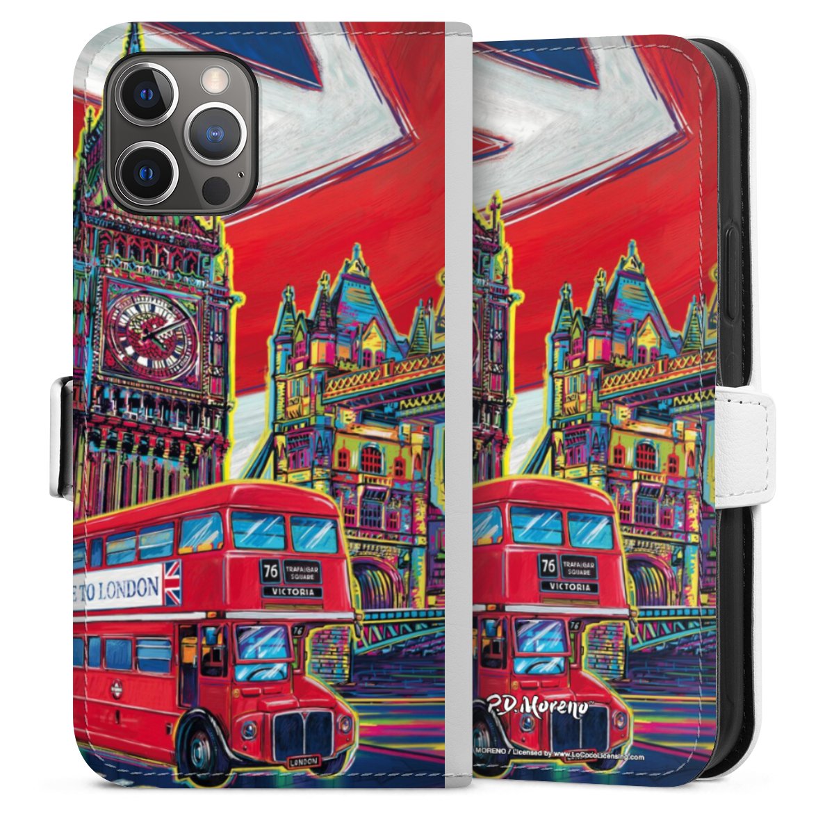 For our Sideflip Case we are using our advanced direct printing technology. The back and frontside are fully printabale, the inside of the phone bag is left unprinted. You can order the phone case without print, printed completely or also with a partial print.