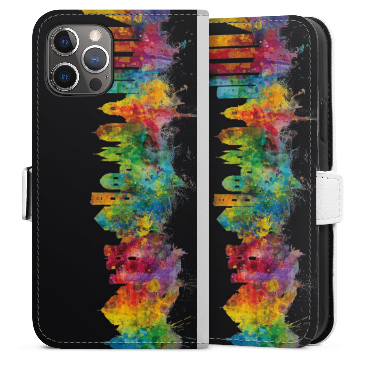 For our Sideflip Case we are using our advanced direct printing technology. The back and frontside are fully printabale, the inside of the phone bag is left unprinted. You can order the phone case without print, printed completely or also with a partial print.