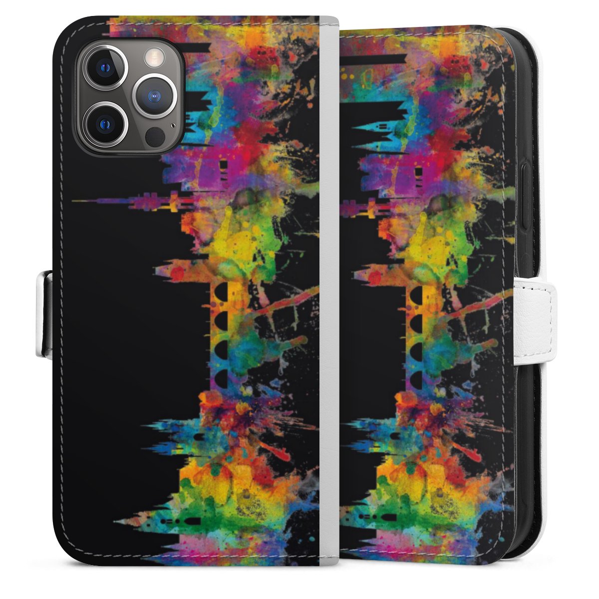 For our Sideflip Case we are using our advanced direct printing technology. The back and frontside are fully printabale, the inside of the phone bag is left unprinted. You can order the phone case without print, printed completely or also with a partial print.