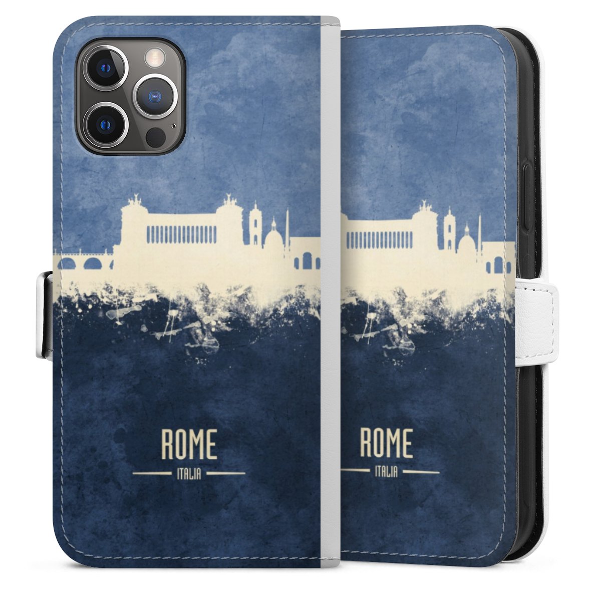 For our Sideflip Case we are using our advanced direct printing technology. The back and frontside are fully printabale, the inside of the phone bag is left unprinted. You can order the phone case without print, printed completely or also with a partial print.
