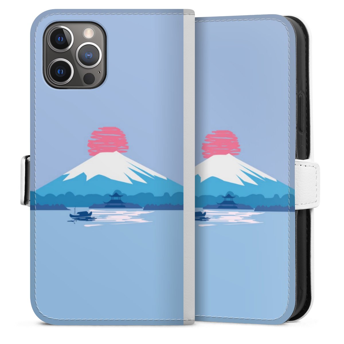 For our Sideflip Case we are using our advanced direct printing technology. The back and frontside are fully printabale, the inside of the phone bag is left unprinted. You can order the phone case without print, printed completely or also with a partial print.