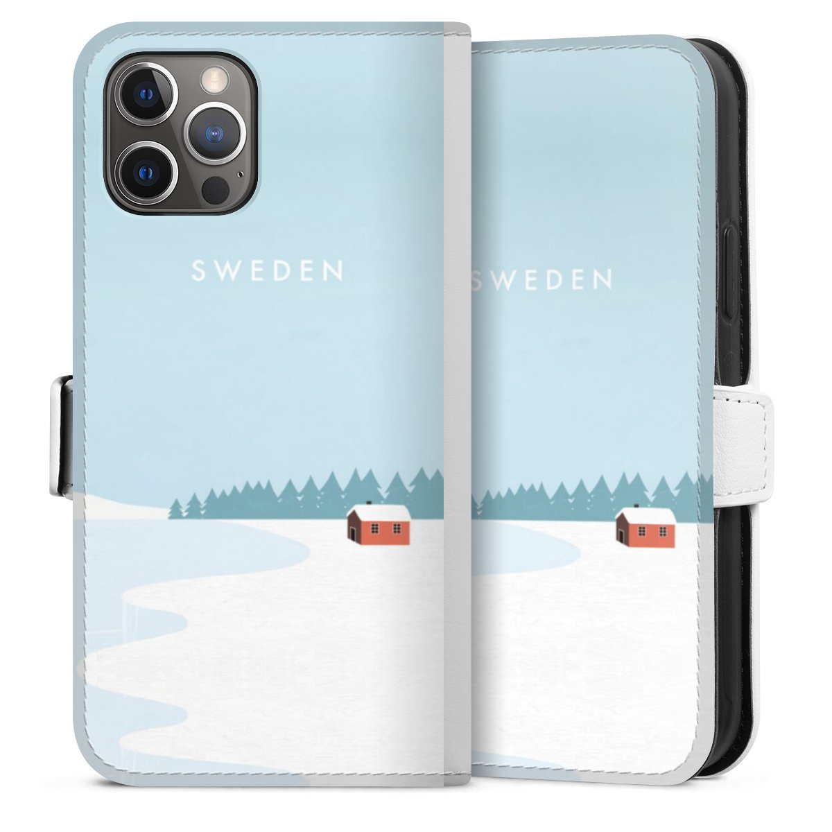 For our Sideflip Case we are using our advanced direct printing technology. The back and frontside are fully printabale, the inside of the phone bag is left unprinted. You can order the phone case without print, printed completely or also with a partial print.