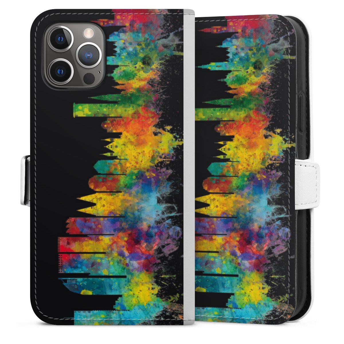 For our Sideflip Case we are using our advanced direct printing technology. The back and frontside are fully printabale, the inside of the phone bag is left unprinted. You can order the phone case without print, printed completely or also with a partial print.
