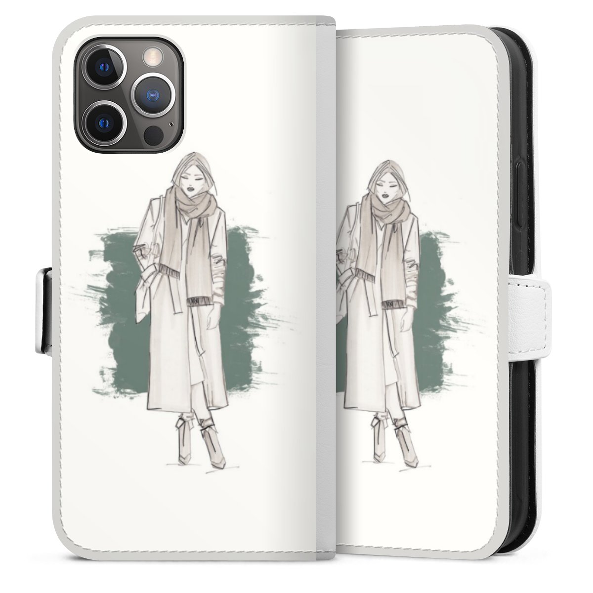 For our Sideflip Case we are using our advanced direct printing technology. The back and frontside are fully printabale, the inside of the phone bag is left unprinted. You can order the phone case without print, printed completely or also with a partial print.
