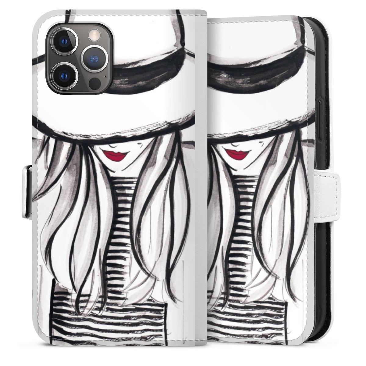 For our Sideflip Case we are using our advanced direct printing technology. The back and frontside are fully printabale, the inside of the phone bag is left unprinted. You can order the phone case without print, printed completely or also with a partial print.