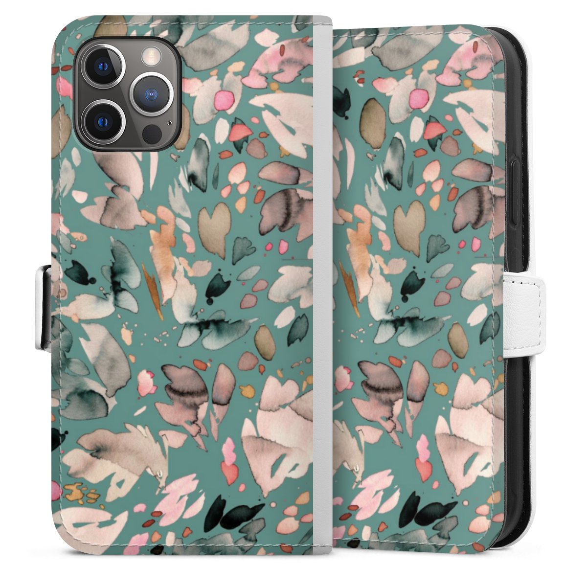 For our Sideflip Case we are using our advanced direct printing technology. The back and frontside are fully printabale, the inside of the phone bag is left unprinted. You can order the phone case without print, printed completely or also with a partial print.