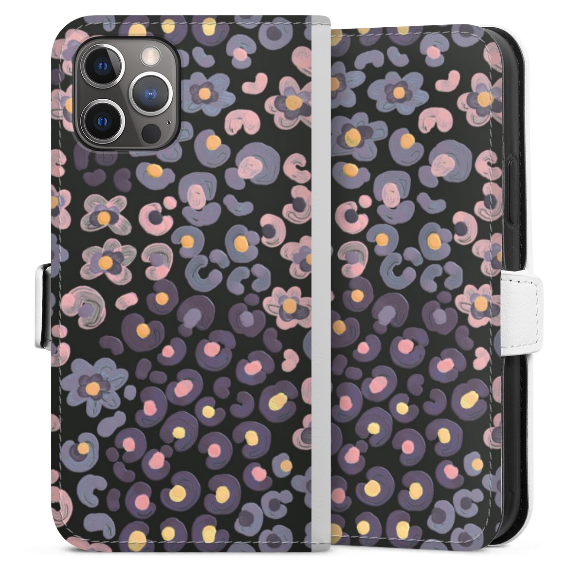 For our Sideflip Case we are using our advanced direct printing technology. The back and frontside are fully printabale, the inside of the phone bag is left unprinted. You can order the phone case without print, printed completely or also with a partial print.