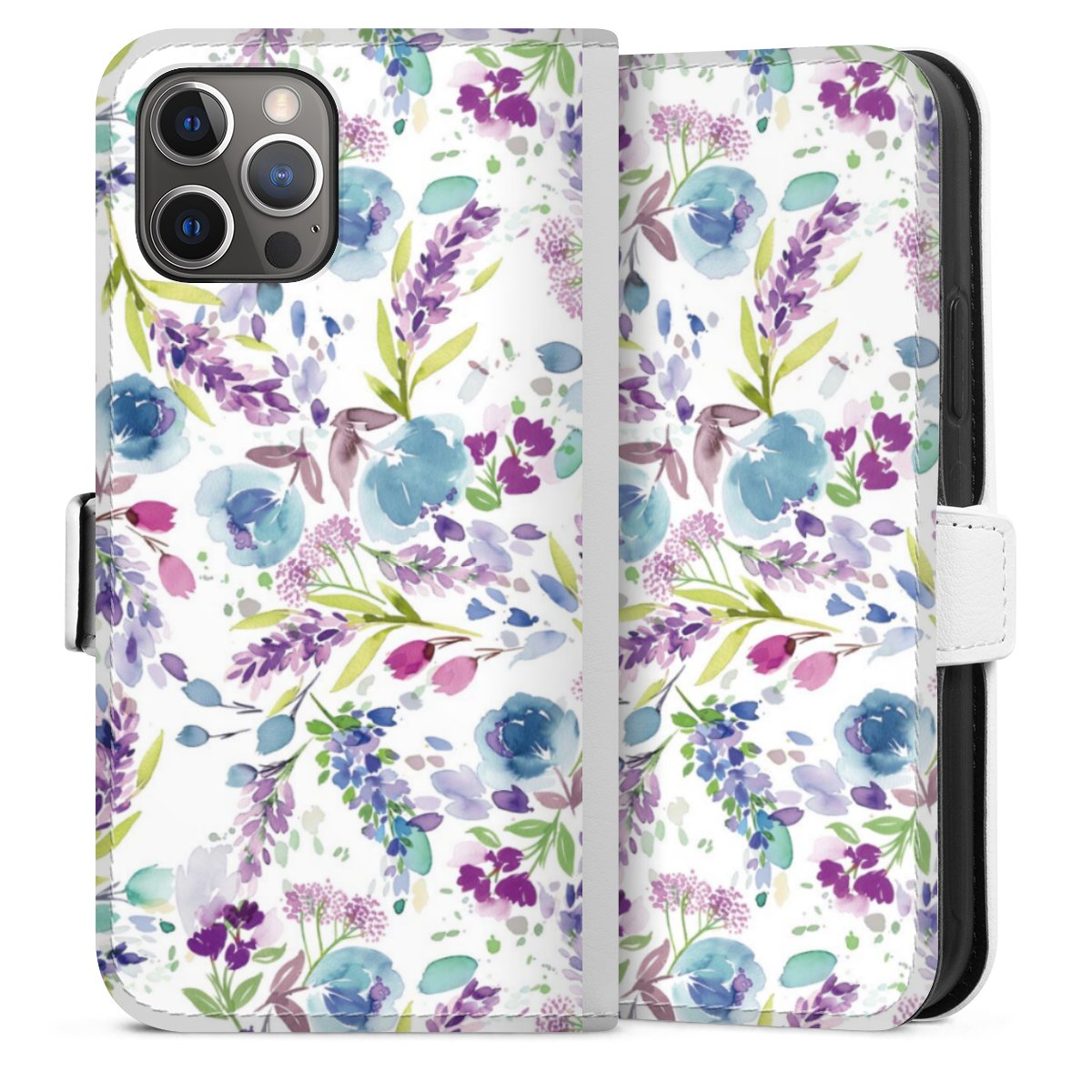 For our Sideflip Case we are using our advanced direct printing technology. The back and frontside are fully printabale, the inside of the phone bag is left unprinted. You can order the phone case without print, printed completely or also with a partial print.