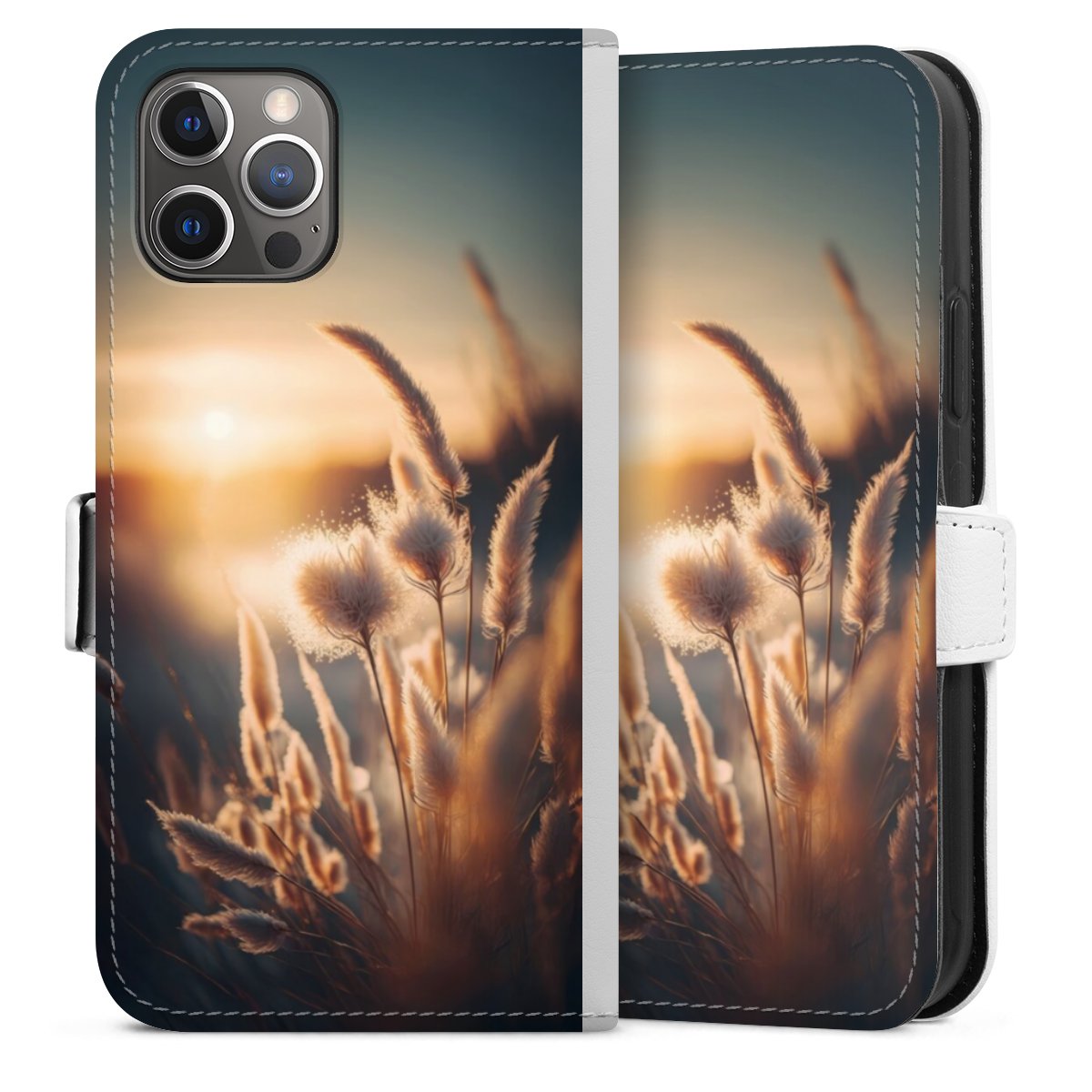 For our Sideflip Case we are using our advanced direct printing technology. The back and frontside are fully printabale, the inside of the phone bag is left unprinted. You can order the phone case without print, printed completely or also with a partial print.