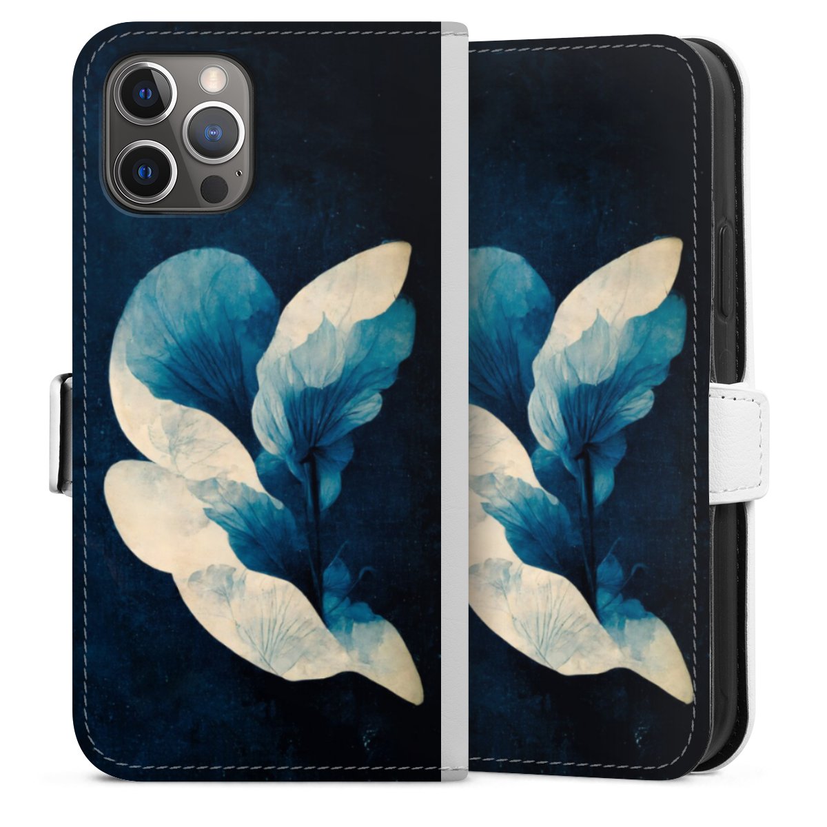 For our Sideflip Case we are using our advanced direct printing technology. The back and frontside are fully printabale, the inside of the phone bag is left unprinted. You can order the phone case without print, printed completely or also with a partial print.