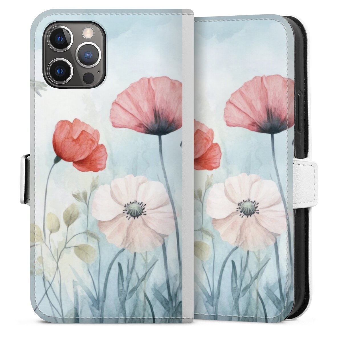 For our Sideflip Case we are using our advanced direct printing technology. The back and frontside are fully printabale, the inside of the phone bag is left unprinted. You can order the phone case without print, printed completely or also with a partial print.