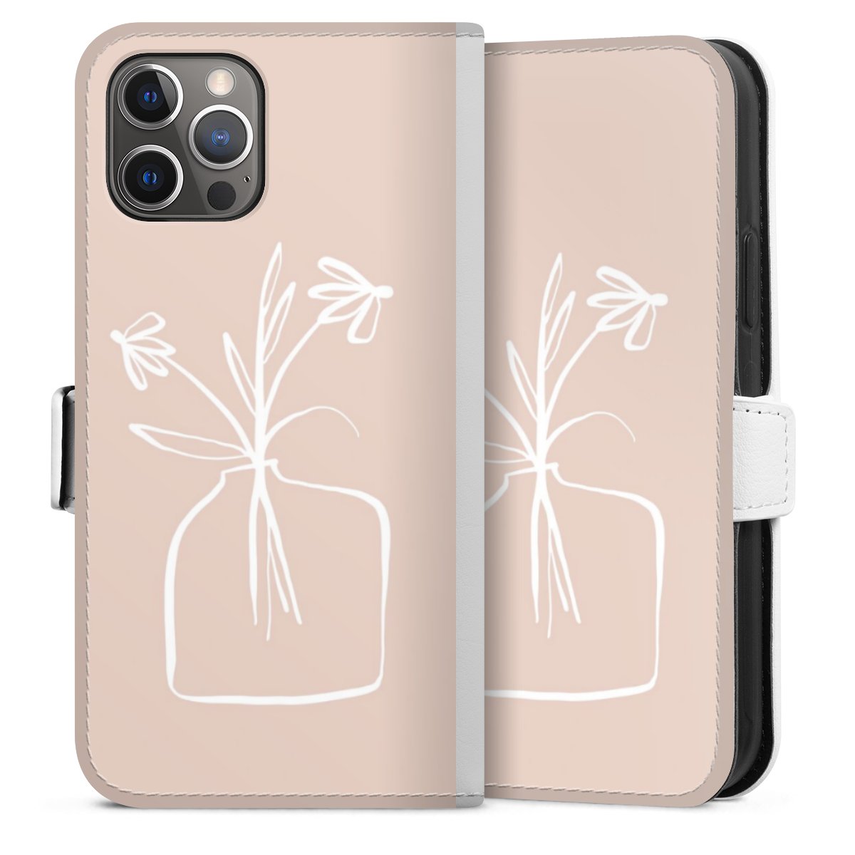 For our Sideflip Case we are using our advanced direct printing technology. The back and frontside are fully printabale, the inside of the phone bag is left unprinted. You can order the phone case without print, printed completely or also with a partial print.