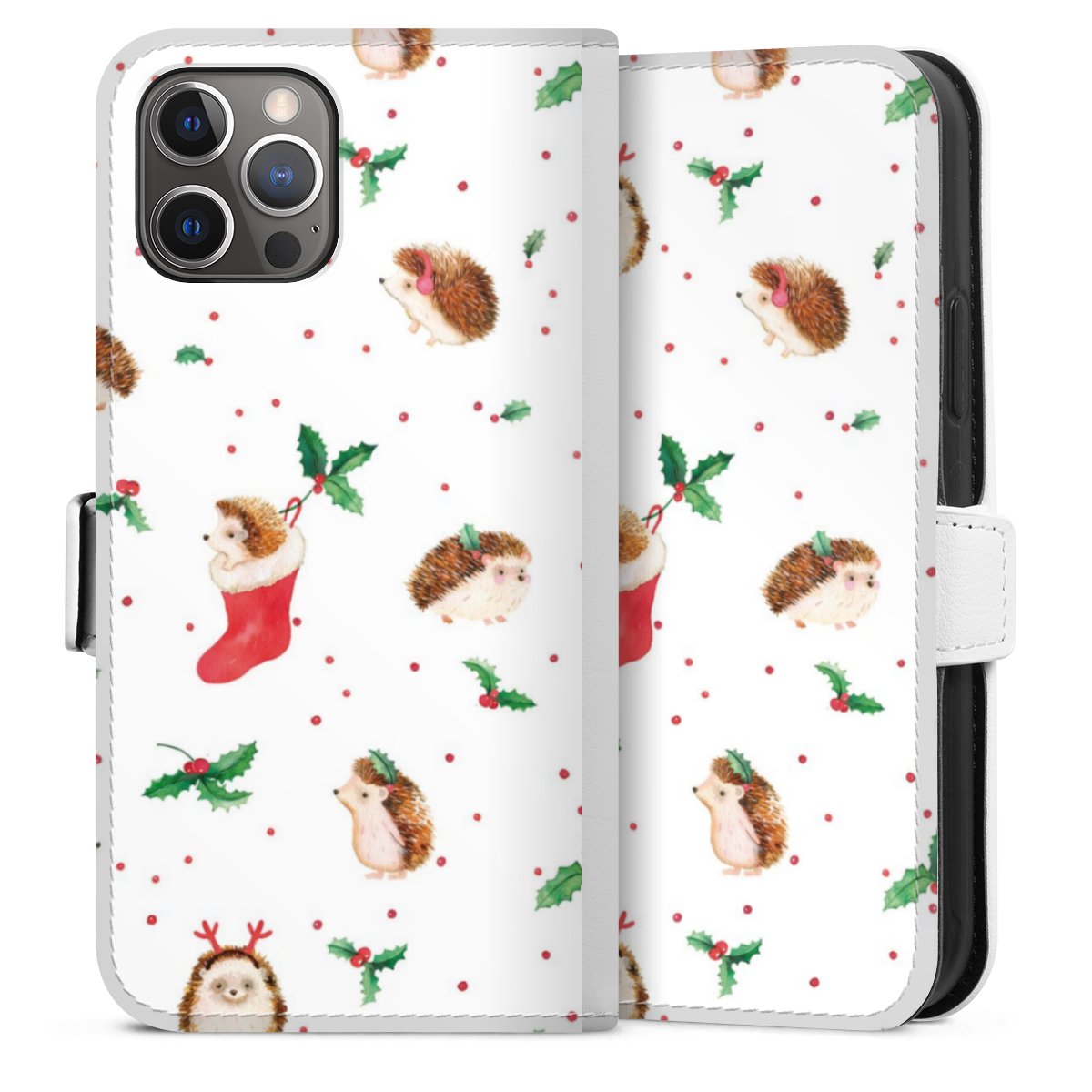 For our Sideflip Case we are using our advanced direct printing technology. The back and frontside are fully printabale, the inside of the phone bag is left unprinted. You can order the phone case without print, printed completely or also with a partial print.