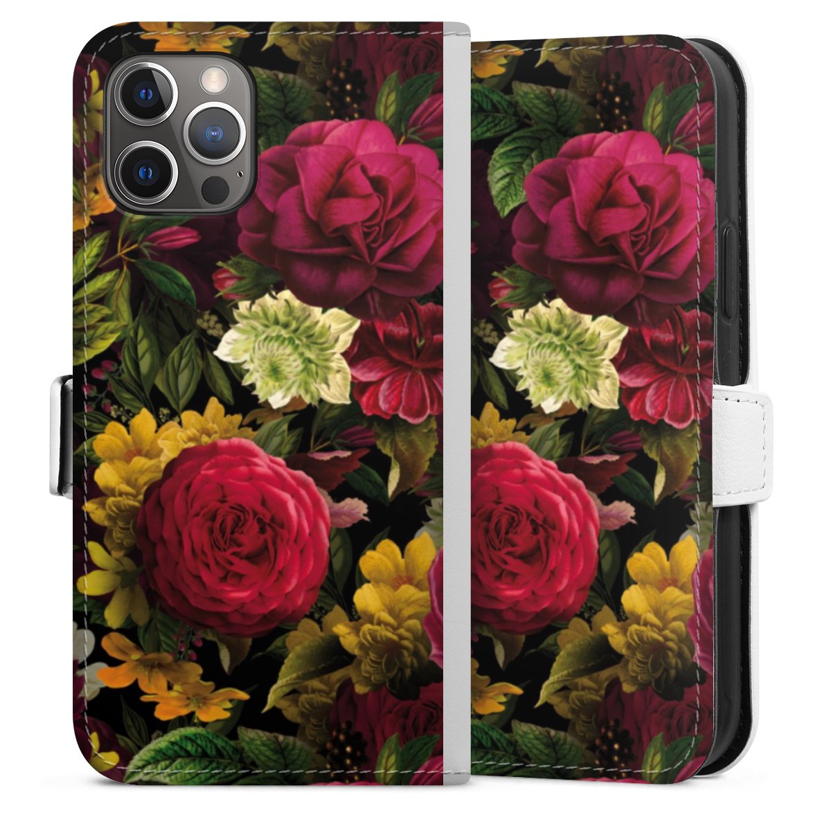 For our Sideflip Case we are using our advanced direct printing technology. The back and frontside are fully printabale, the inside of the phone bag is left unprinted. You can order the phone case without print, printed completely or also with a partial print.