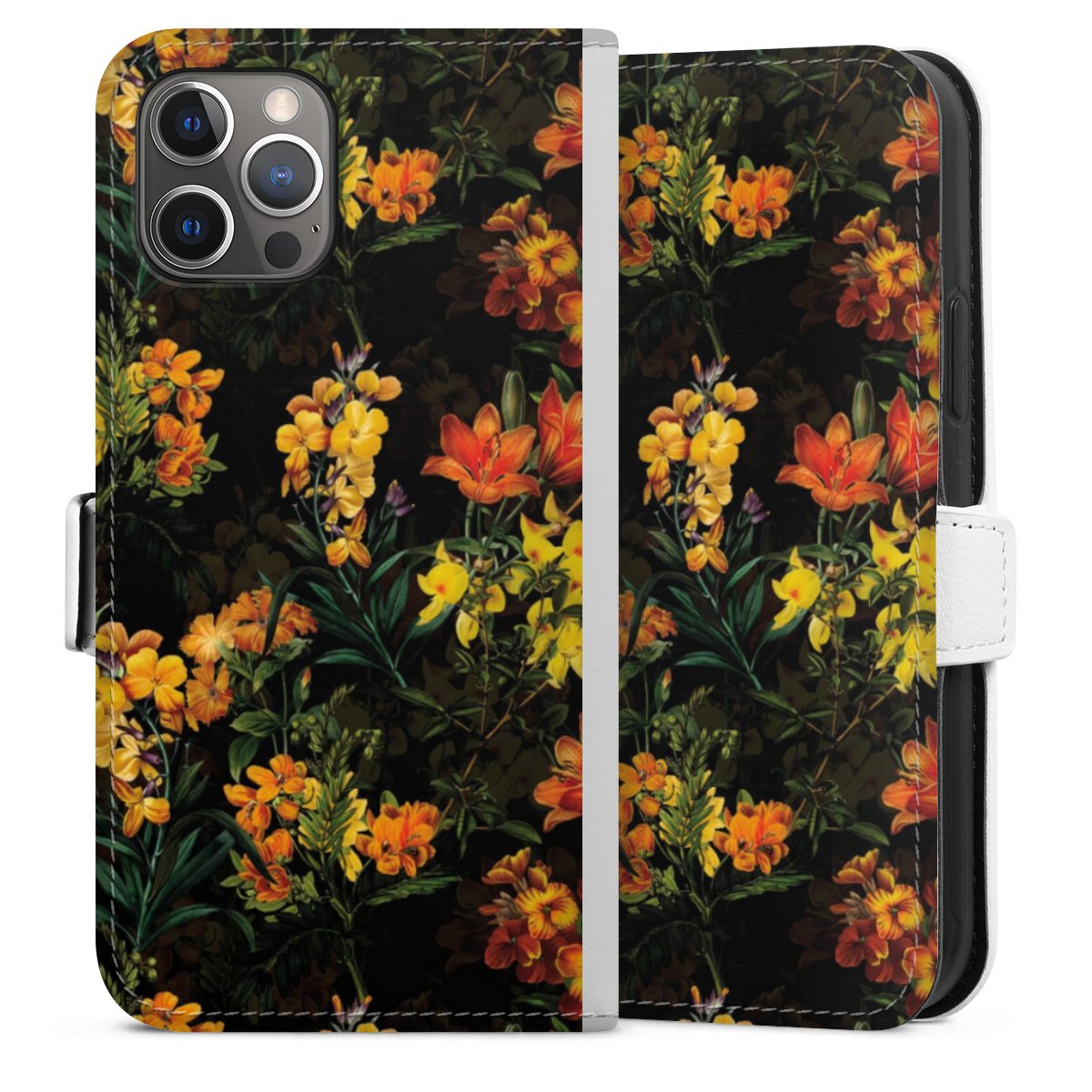 For our Sideflip Case we are using our advanced direct printing technology. The back and frontside are fully printabale, the inside of the phone bag is left unprinted. You can order the phone case without print, printed completely or also with a partial print.