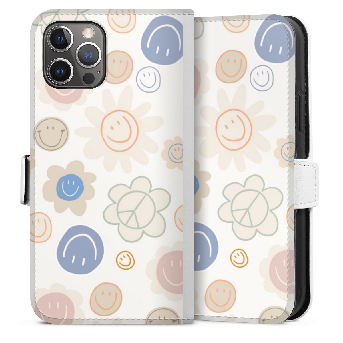 For our Sideflip Case we are using our advanced direct printing technology. The back and frontside are fully printabale, the inside of the phone bag is left unprinted. You can order the phone case without print, printed completely or also with a partial print.
