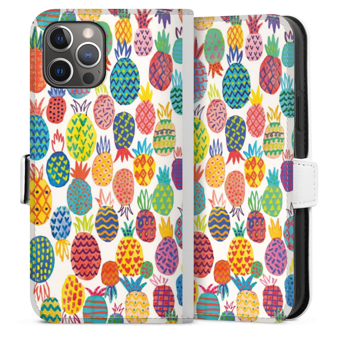 For our Sideflip Case we are using our advanced direct printing technology. The back and frontside are fully printabale, the inside of the phone bag is left unprinted. You can order the phone case without print, printed completely or also with a partial print.