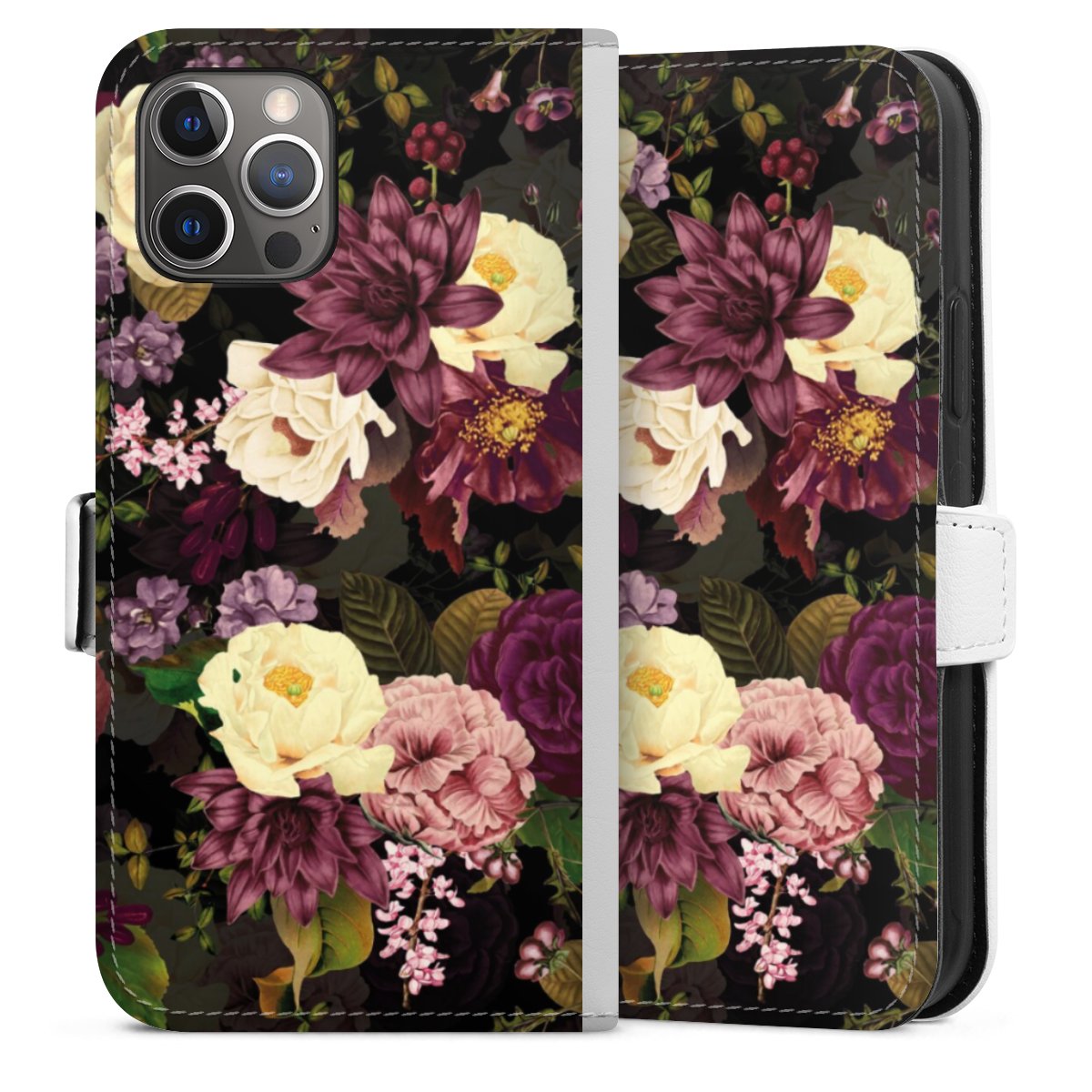 For our Sideflip Case we are using our advanced direct printing technology. The back and frontside are fully printabale, the inside of the phone bag is left unprinted. You can order the phone case without print, printed completely or also with a partial print.