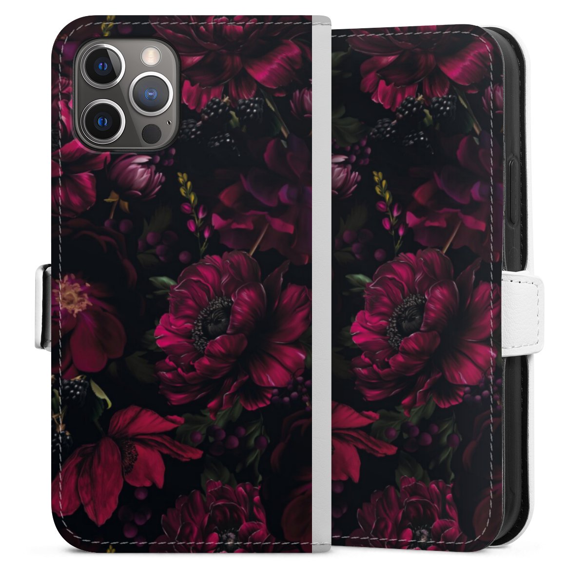 For our Sideflip Case we are using our advanced direct printing technology. The back and frontside are fully printabale, the inside of the phone bag is left unprinted. You can order the phone case without print, printed completely or also with a partial print.