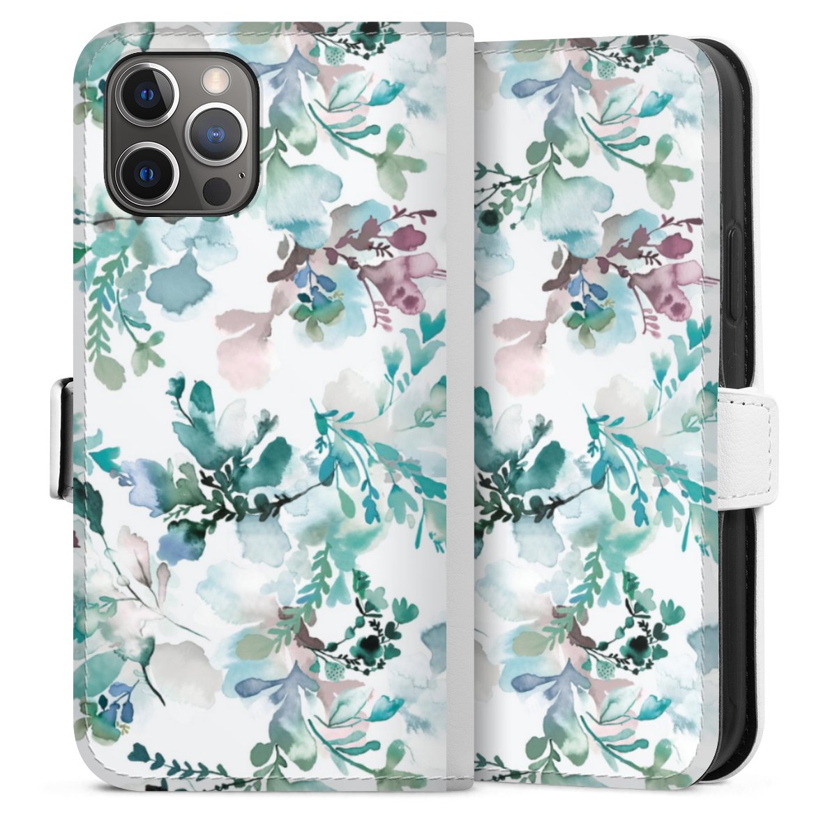 For our Sideflip Case we are using our advanced direct printing technology. The back and frontside are fully printabale, the inside of the phone bag is left unprinted. You can order the phone case without print, printed completely or also with a partial print.