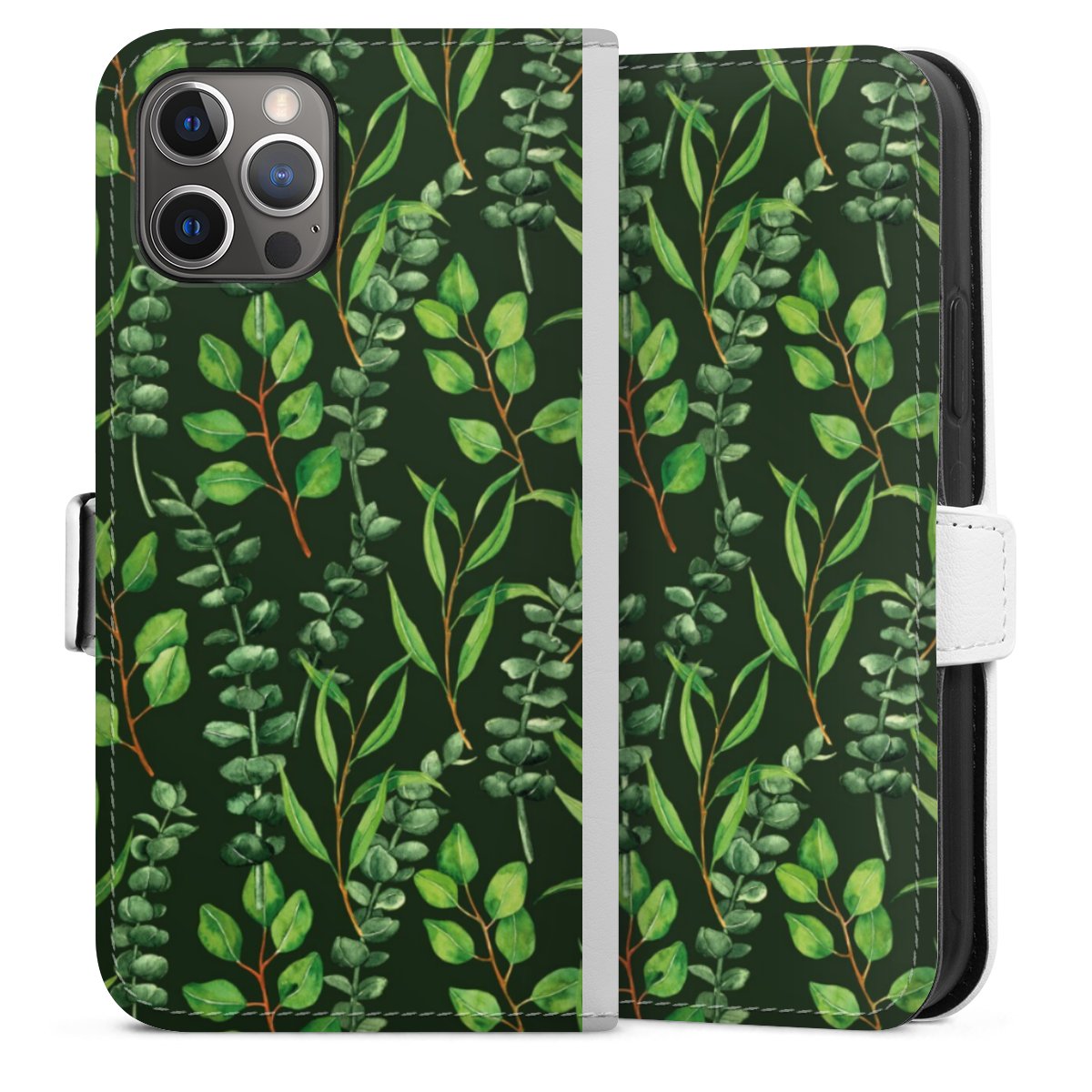 For our Sideflip Case we are using our advanced direct printing technology. The back and frontside are fully printabale, the inside of the phone bag is left unprinted. You can order the phone case without print, printed completely or also with a partial print.