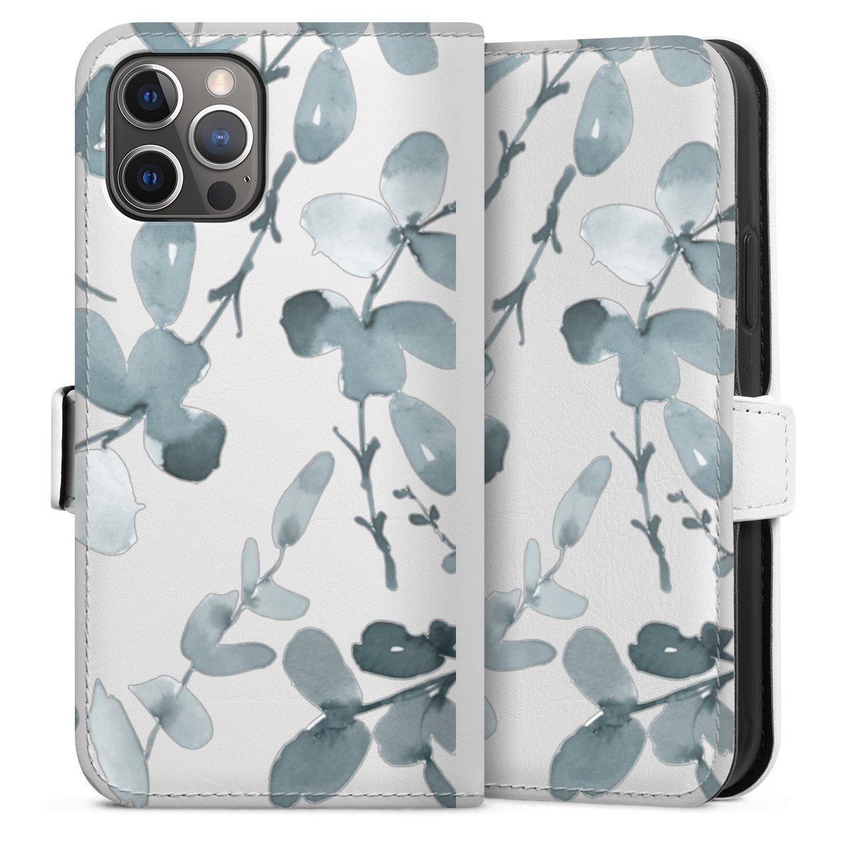 For our Sideflip Case we are using our advanced direct printing technology. The back and frontside are fully printabale, the inside of the phone bag is left unprinted. You can order the phone case without print, printed completely or also with a partial print.