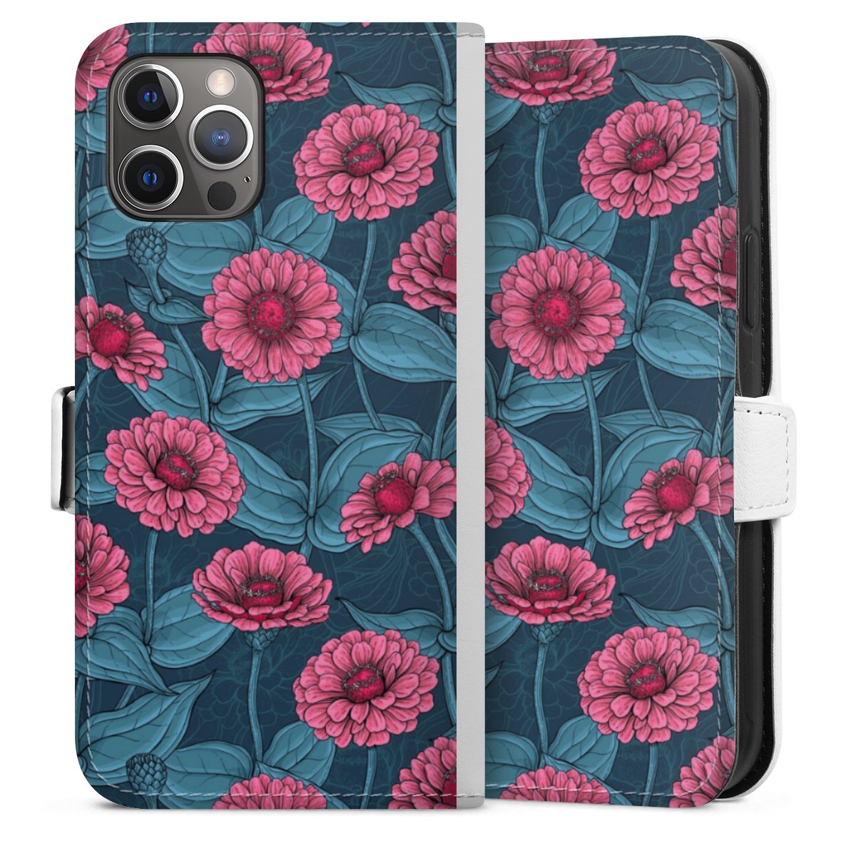 For our Sideflip Case we are using our advanced direct printing technology. The back and frontside are fully printabale, the inside of the phone bag is left unprinted. You can order the phone case without print, printed completely or also with a partial print.