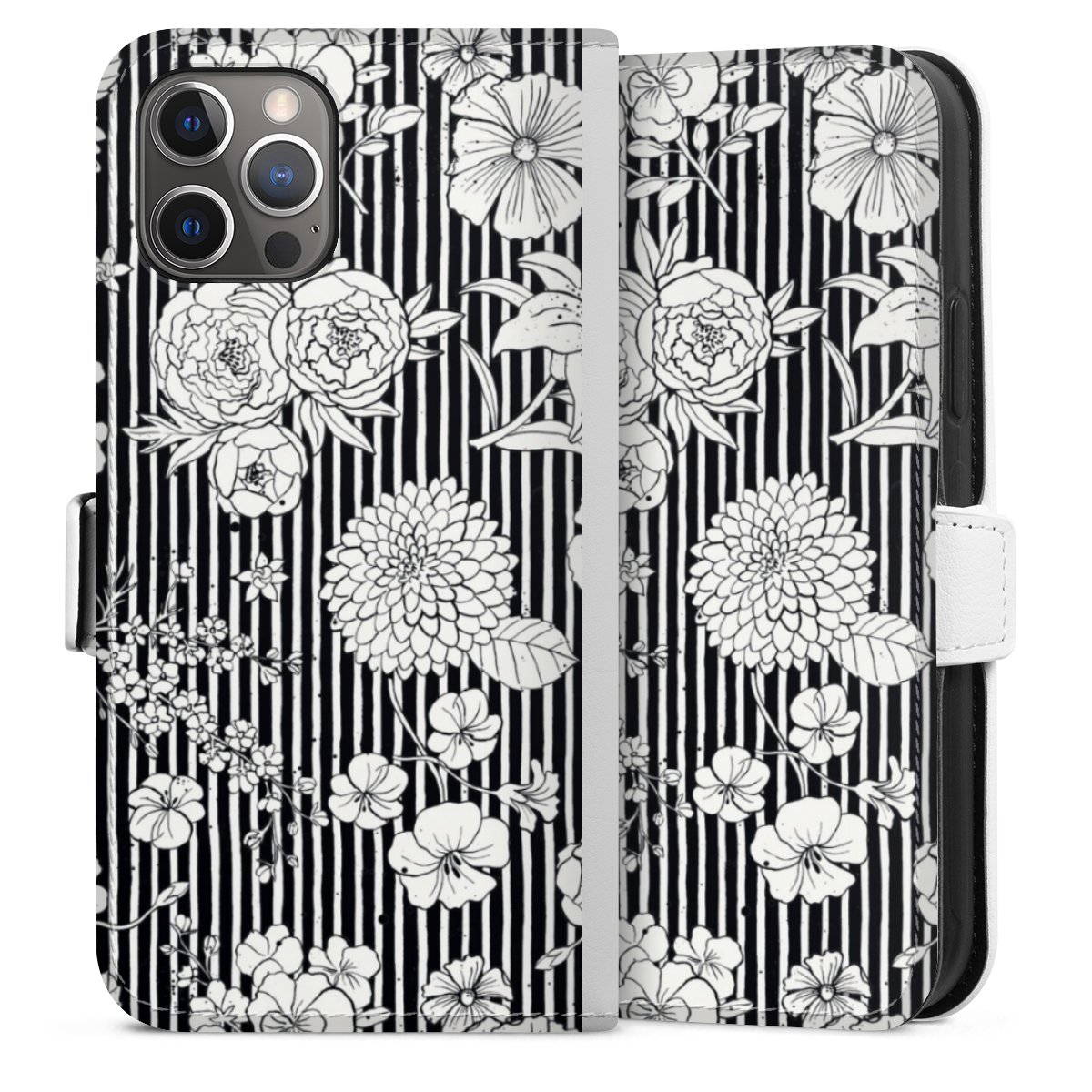 For our Sideflip Case we are using our advanced direct printing technology. The back and frontside are fully printabale, the inside of the phone bag is left unprinted. You can order the phone case without print, printed completely or also with a partial print.