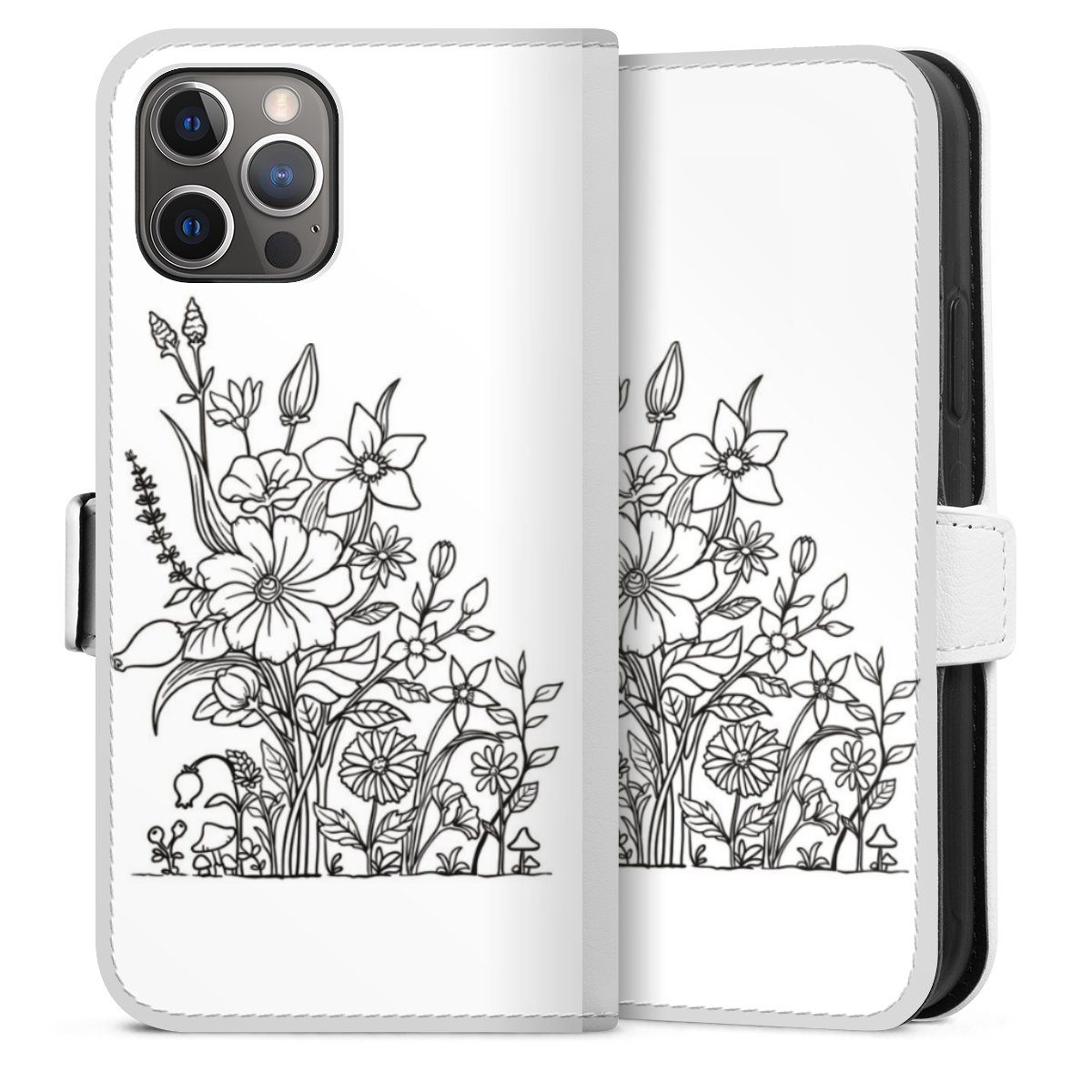 For our Sideflip Case we are using our advanced direct printing technology. The back and frontside are fully printabale, the inside of the phone bag is left unprinted. You can order the phone case without print, printed completely or also with a partial print.