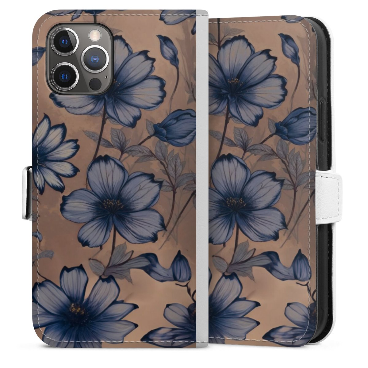 For our Sideflip Case we are using our advanced direct printing technology. The back and frontside are fully printabale, the inside of the phone bag is left unprinted. You can order the phone case without print, printed completely or also with a partial print.