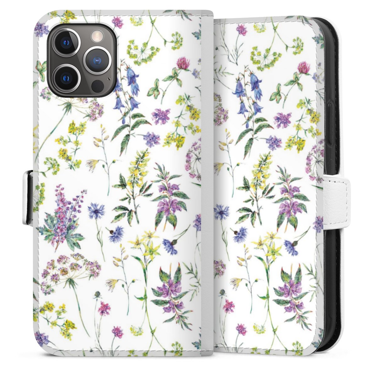 For our Sideflip Case we are using our advanced direct printing technology. The back and frontside are fully printabale, the inside of the phone bag is left unprinted. You can order the phone case without print, printed completely or also with a partial print.