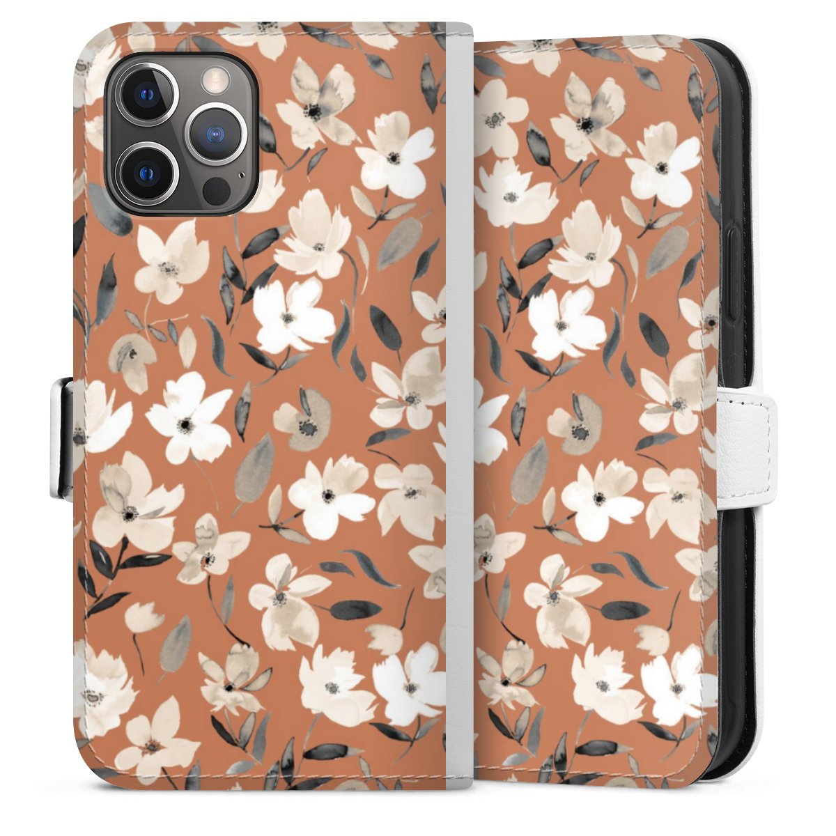 For our Sideflip Case we are using our advanced direct printing technology. The back and frontside are fully printabale, the inside of the phone bag is left unprinted. You can order the phone case without print, printed completely or also with a partial print.