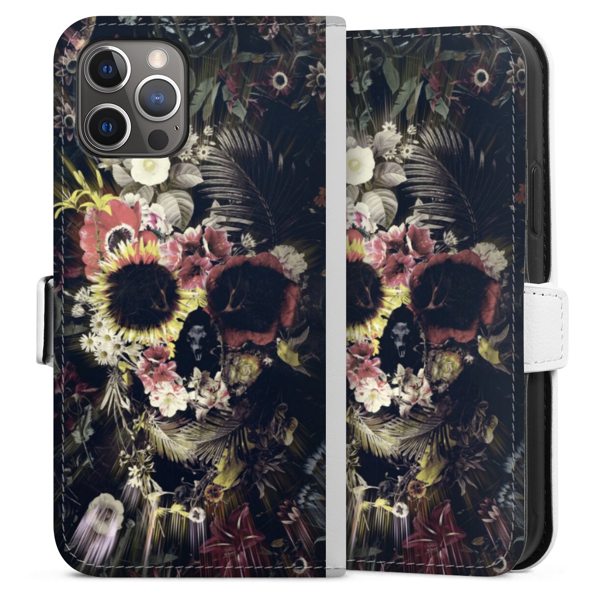 For our Sideflip Case we are using our advanced direct printing technology. The back and frontside are fully printabale, the inside of the phone bag is left unprinted. You can order the phone case without print, printed completely or also with a partial print.