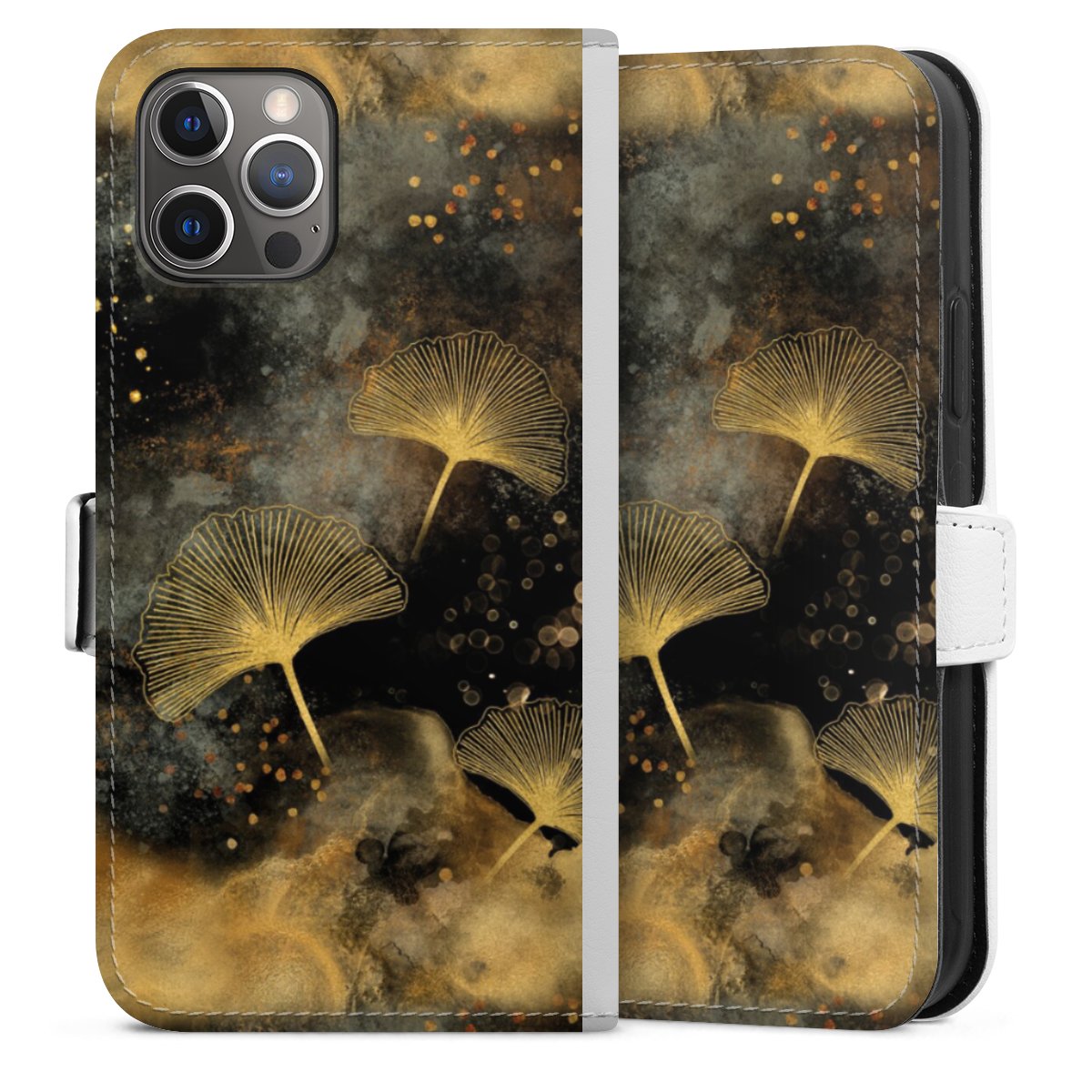 For our Sideflip Case we are using our advanced direct printing technology. The back and frontside are fully printabale, the inside of the phone bag is left unprinted. You can order the phone case without print, printed completely or also with a partial print.