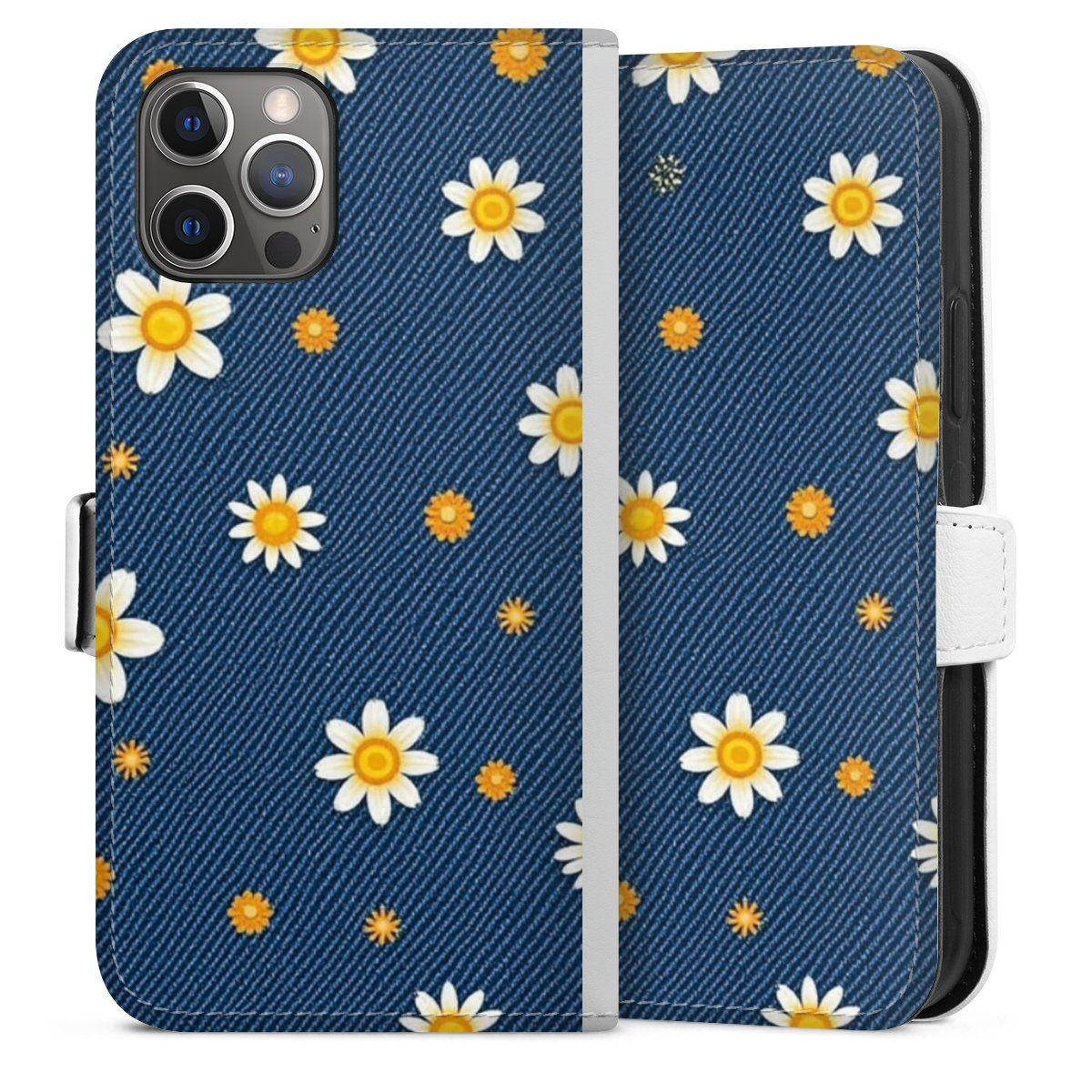 For our Sideflip Case we are using our advanced direct printing technology. The back and frontside are fully printabale, the inside of the phone bag is left unprinted. You can order the phone case without print, printed completely or also with a partial print.