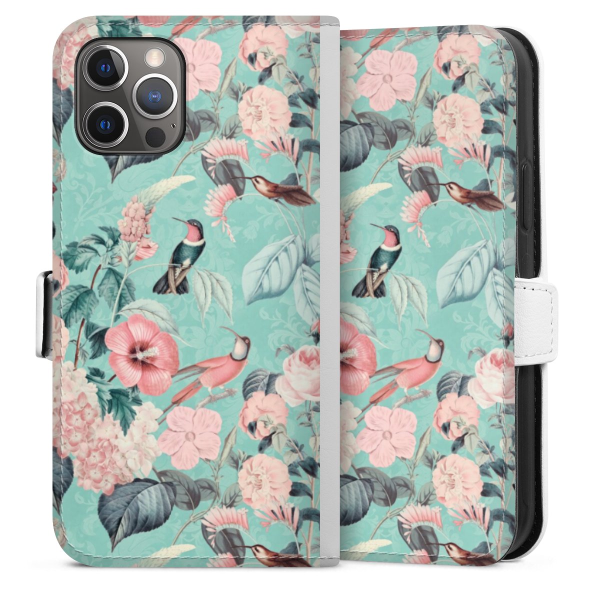 For our Sideflip Case we are using our advanced direct printing technology. The back and frontside are fully printabale, the inside of the phone bag is left unprinted. You can order the phone case without print, printed completely or also with a partial print.