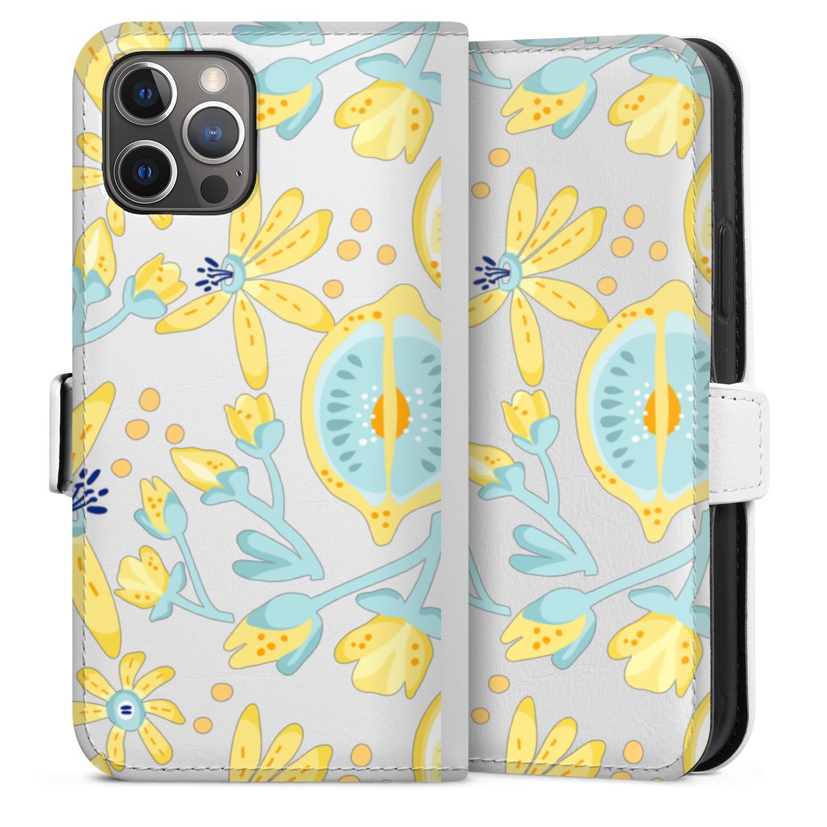 For our Sideflip Case we are using our advanced direct printing technology. The back and frontside are fully printabale, the inside of the phone bag is left unprinted. You can order the phone case without print, printed completely or also with a partial print.